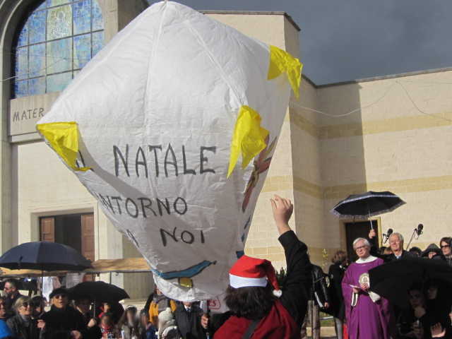 Sul palco, dopo gli Auguri del parroco, don Antonello Castoro, si è esibito il coro parrocchiale con i canti e le preghierine dei bambini. Non sono mancati i fuochi di artificio e il lancio della mongolfiera che ha portato in volo gli Auguri di Natale a tutto il quartiere.