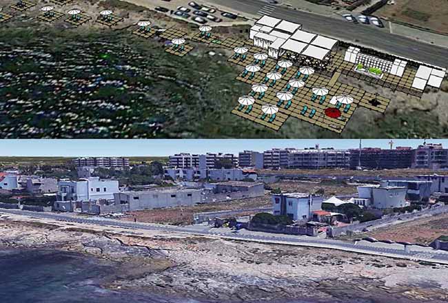 Il progetto, presentato dall’imprenditore Giovanni Amendola, occuperà un’area prospiciente via Alfredo Giovine lunga circa 117 metri, con pedane in acciaio zavorrate, opportunamente rivestite con pavimento in legno, che non avranno contatto con la roccia né saranno ancorate per non intaccare in alcun modo la struttura fisica degli ambienti. La copertura dell’area a scogliera garantisce ampi spazi liberi che potranno essere utilizzati liberamente in quanto hanno un andamento più o meno regolare. Sarà realizzata un’area servizi, accessibili anche alle persone con disabilità, con bar e annessa zona coperta attrezzata con tavoli, una dispensa, un laboratorio e un deposito. Saranno predisposti i servizi igienici, 72 spogliatoi e armadietti per permettere ai bagnanti di custodire i propri effetti personali. Tutte le strutture saranno “amovibili” e modulari.