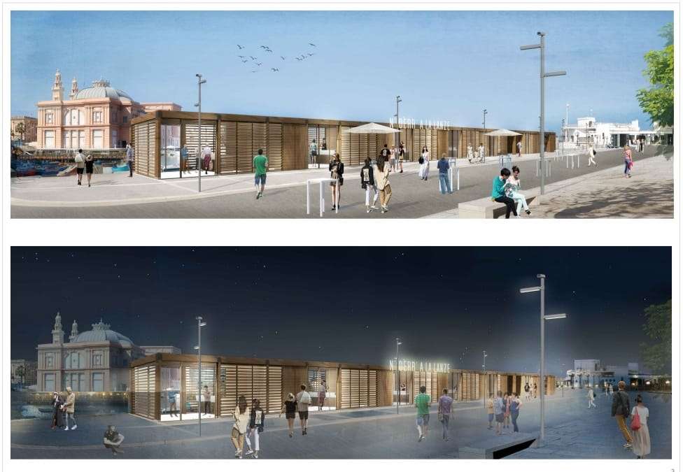 Tra i primi interventi previsti vi è la riqualificazione funzionale delle attività presenti sul molo San Nicola, con particolare riferimento alle attività del mercato del pescato fresco, per le quali si propone un adeguamento architettonico che consentirebbe di svolgerle nel rispetto delle norme igieniche e di sicurezza vigenti.