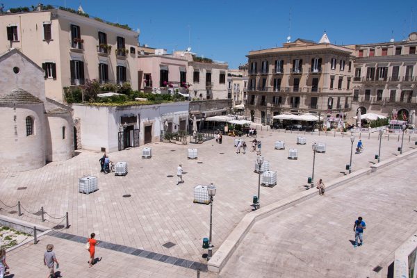 Il Continuum di Raffaele Quida è sbarcato per un giorno a Bari; lo scorso 31 maggio 2016 il progetto dell’artista leccese ha vissuto il suo secondo atto in Piazza del Ferrarese, luogo centrale e di passaggio del capoluogo pugliese, con l’installazione di dodici grandi contenitori industriali, collocati per “interferire temporaneamente” con i passanti.