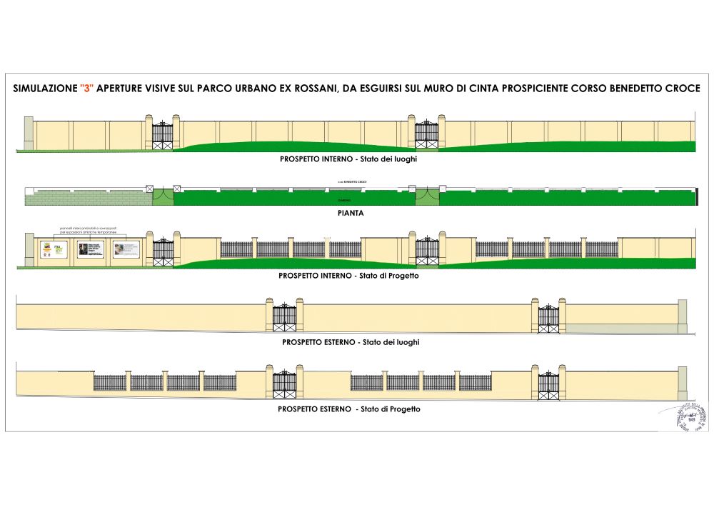 “Si tratta di una trasformazione importante che consentirà un’ampia visuale prospettica del nuova parco realizzato da via Benedetto Croce – spiega l’assessore Galasso – e contemporaneamente permetterà di salvaguardare la presenza di un muro storico che, tra le altre cose, tutela lo stato dei luoghi visto il dislivello che esiste tra il parco e il marciapiede stradale. Questo è certamente un riscontro positivo che arriva al termine di un lungo percorso che abbiamo portato avanti insieme ai cittadini e che in qualche modo restituisce in maniera ancora più concreta la nuova area dell’ex Caserma Rossani alla città. Già nelle prossime settimane gli uffici comunali saranno al lavoro per mettere a punto il progetto definitivo da presentare alla Soprintendenza”.