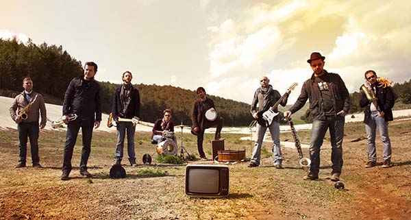 Il calore della tradizionale banda da giro del sud Italia è reso rovente dalla frenesia della musica balcanica. Il loro ultimo album, “OffBeat”, è groove, velocità, energia e una gioiosa, elettrica follia. Klezmer, rock, jazz e tradizione si mescolano in una imprevedibile, poetica visione musicale. Fiati e chitarre, batteria e percussioni mediterranee disegnano un più ampio orizzonte nella world fusion. Questa la line up della Municipal Balcanica: Armando Giusti (alto and baritone sax), Michele de Lucia (clarinet and bass clarinett), Nico Marziale (percussion: darbuka, cajon, tammorra, didjeridoo, effects), Raffaele Piccolomini (tenor and alto sax), Giorgio Rutigliano (electric bass), Paolo Scagliola (trumpet and flugehorn), Luigi Sgaramella (drums), Raffaele Tedeschi (electric guitar and voice).
