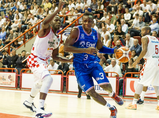 Enel Brindisi: Banks 15, Reynolds 12, Scott 5, Cournooh 13, Harris 14, Cardillo n.e., Milosevic, Gagic 5, De Gennaro n.e., Zerini, Marzaioli n.e., Kadji 14. Coach: Bucchi