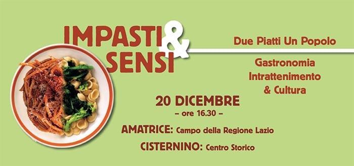 L’Associazione Culturale Urbieterre si prepara ad offrire alle città di Cisternino e di Amatrice un evento unico nel suo genere. Martedì 20 Dicembre 2016, a pochi giorni dalla festa del Santo Natale, si terrà la seconda edizione di “Impasti e sensi”, che quest’anno vedrà la cittadina della Valle d’Itria gemellata con la cittadina laziale di Amatrice, tra le più colpite dal terremoto che lo scorso 24 agosto interessò il Centro Italia.