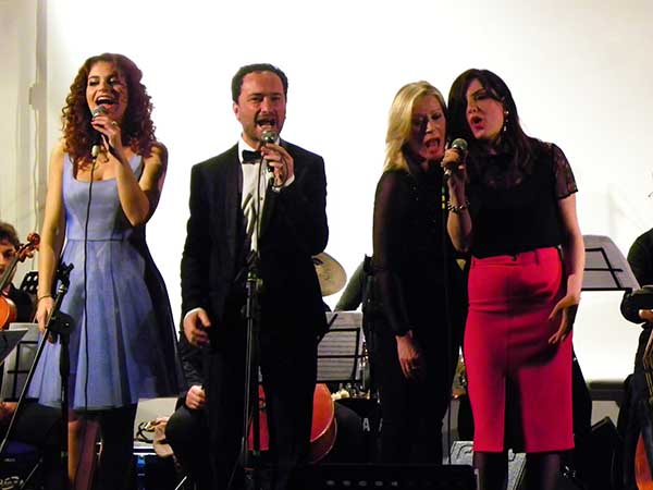Sul palco sotto la direzione di Paolo Lepore, uno dei primi musicisti che hanno cominciato a parlare il linguaggio del jazz a Bari, tanti giovani e gli esperti “anziani” Gino Palmisano al pianoforte elettrico, Pasquale Gadaleta al contrabbasso, Mimmo Campanale alla batteria, Nino Bisceglie al trombone, Grazia Di Giorgio al sax tenore. In supporto per l’occasione il quartetto d’archi Gershwin diretto da Fabrizio Signorile. E poi quattro formidabili cantanti che, ascoltati domenica, dopo la serata finale del Festival di Sanremo, danno l’esatta dimensione di quanta falsità regna nei canali ufficiali della comunicazione di massa.