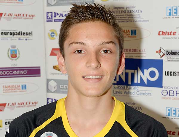 L’atleta mancino ha già maturato esperienza in prima squadra, distinguendosi particolarmente nelle categorie giovanili, dove ha conquistato con il team trentino gli scudetti Under 16, Under 18 ed Under 20, venendo premiato come miglior ala destra nelle finali nazionali Under 14, Under 16, Under 18 (per due volte) ed Under 20.