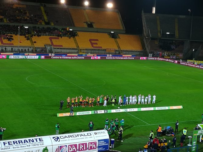 Il secondo tempo cambia subito storia e si vede dai primi secondi. Il Lecce ha un altro atteggiamento. I giocatori salgono tutti di livello e finalmente si inizia a ragionare da squadra. Al 52′ Calderoni ci prova da fuori con un bel tiro, Ravaglia si salva in angolo. Anche le fasce laterali vengono sfruttate di più e meglio. Venuti finalmente si fa vedere e mette al centro molti palloni giocabili e insidiosi. Anche Armellino, fantasma nel primo tempo, cresce e offre buone giocate ai compagni. Al 55′ libera in maniera geniale Mancosu che però calcia alto. Al 64′ dopo aver costruito molto, finalmente il Lecce passa in vantaggio. Calderoni crossa al centro da sinistra, Falco prima di sinistro si fa respingere il tiro da Ravaglia e poi sulla ribattuta è bravo a segnare di destro. Il Lecce è in vantaggio per 1-0. I giallorossi sono tutt’altro che sazi. Mancosu dopo appena due minuti ci prova da fuori area con un ottimo destro all’angolino alto. Ravaglia ci arriva. Al 70′ ci prova anche Croce da fuori area, senza fortuna. Il Lecce però al contrario della gara con il Cosenza controlla la partita e non subisce azioni pericolose. La Mantia è il simbolo di questi minuti concitati. Tiene palla, fa salire la squadra, prende botte, conquista punizioni vitali. Al 78′ La Mantia, dopo una gara fatta di sacrifici e tenacia, raccoglie i frutti del lavoro. Il calcio d’angolo proviene da destra, l’attaccante leccese salta in maniera poderosa e stacca di testa. Il pallone rimbalza su Greco la cui deviazione è forse decisiva. Il Lecce passa a condurre per 2 a 0. All’81’ Haye, entrato da pochi secondi, viene liberato bene al limite dell’area, ma non è bravo a sfruttare l’occasione. L’olandese comunque regala sprazzi di bel gioco con movimenti di fino e carezze sul pallone che il pubblico sembra apprezzare. Dopo 5 minuti di recupero, senza rischi, il Lecce porta i 3 punti a casa, e si piazza dietro Palermo e Pescara.
