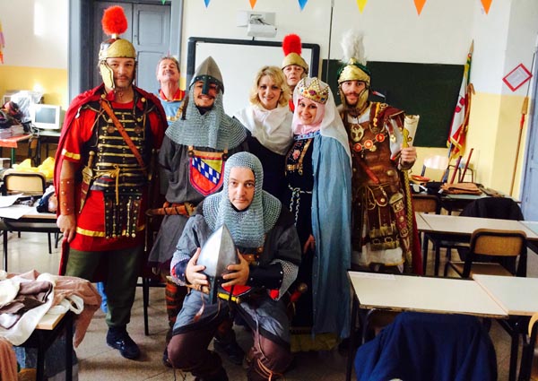 Un viaggio indietro nel tempo, partendo dall’epoca romana, a quella dei templari, e delle crociate, all’arrivo dei Garibaldini ed infine all’unificazione d’Italia. Costumi d’epoca con personaggi oranti proprio lingue d’un tempo. Partecipazione attiva degli alunni che annuendo ad ogni epoca si lasciano trasportare nel tempo con musiche molto caratteristiche.