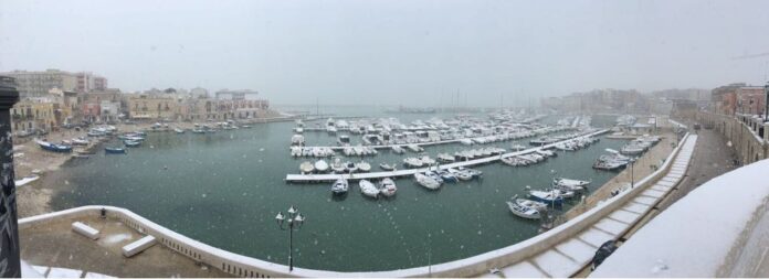 Immagini che non sempre si vedono in Puglia con le spiagge di Bari ricoperte dalla neve o una città che ha visto ben presto auto e marciapiedi ricoperto da un sottile manto bianco.
