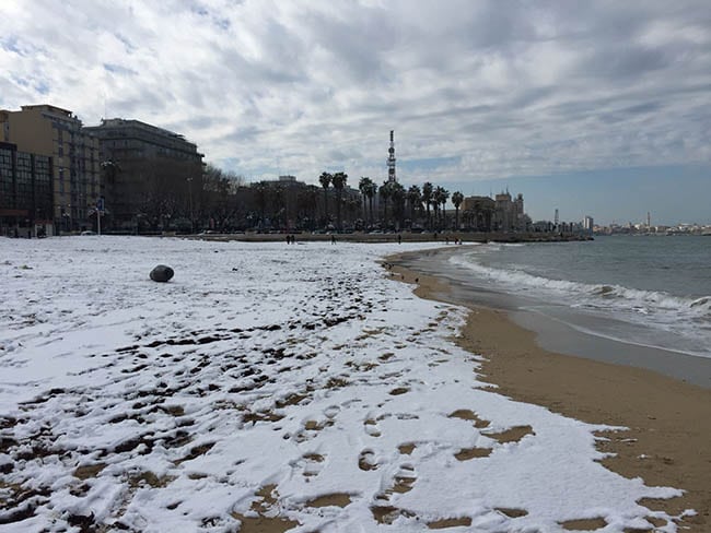 Immagini che non sempre si vedono in Puglia con le spiagge di Bari ricoperte dalla neve o una città che ha visto ben presto auto e marciapiedi ricoperto da un sottile manto bianco.