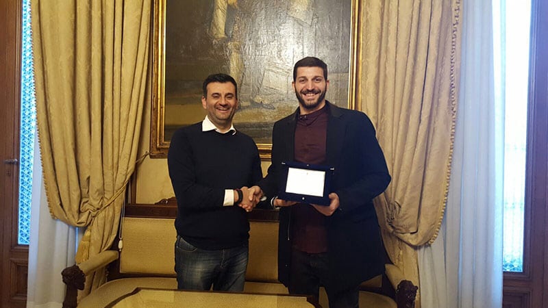 Questo pomeriggio il sindaco Antonio Decaro e il consigliere comunale Michele Picaro hanno ricevuto a Palazzo di Città il giovane campione barese di pallanuoto Nicola Cuccovillo, cui hanno consegnato una targa in segno di riconoscimento per i suoi meriti sportivi.