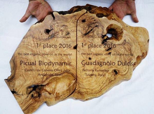 Ad essere premiati saranno i vincitori individuati in Salento dalla Giuria internazionale composta da 25 esperti provenienti da 11 Paesi (Italia, Germania, Slovenia, Giappone, Gran Bretagna, Grecia, Spagna, Tunisia, Usa, Cile e Siria). Ricordiamo la classifica, a cominciare dai due oli ex aequo sul gradino più alto del podio: il fiorentino “Guadagnolo” della Fattoria Ramerino, e l’andaluso “Picual” dell’azienda Castillo de Canena (che tra l’altro è il primo olio biodinamico – certificato Demeter – a vincere il Biol). I due produttori riceveranno un’opera molto particolare, dell’ecodesigner barese Semmy Marziliano: un blocco di un olivo di circa 250 anni – parte di una branca più grande spezzatasi per cause naturali nell’area tra Gallipoli e Nardò – la cui lavorazione è stata avviata live dall’artista al Museo Must, durante la manifestazione di marzo.