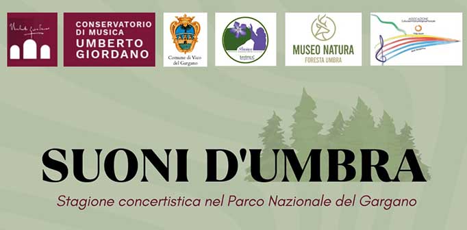 Sono gli elementi peculiari e imprescindibili di “Suoni d’Umbra”, la nuova stagione concertistica organizzata dalla sede di Rodi Garganico del Conservatorio di musica “Umberto Giordano” di Foggia insieme a l’Associazione “Luigi Russo”, all’Associazione Pervinca, Comunità Laudato si’ – Gargano Nord, al Museo Natura della Foresta Umbra, con il sostegno della Fondazione Musicalia della Fondazione dei Monti Uniti di Foggia e il patrocinio del Comune di Vico del Gargano.