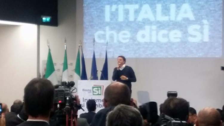 E Renzi non ha lesinato parole e commenti ai tanti presenti alla manifestazione “Basta un Si”. “Stiamo entrando nei quindici giorni che possono cambiare i prossimi anni. Sono decenni che tutti promettono qualcosa cambierà, adesso questo cambiamento dipende da voi, da noi. Ed è bellissimo, alla faccia di quelli che hanno tutto da ridire”. “Vincerà il No? – ha chiesto alla platea – Vorrà dire che gli italiani avranno deciso che va tutto bene come stiamo andando fino ad oggi”. “Vincerà il Sì? – ha concluso – Sarà una grande operazione di democrazia”.