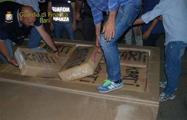 Il carico di stupefacenti, del peso di circa 1,2 chilogrammi, destinato a soddisfare le richieste del mercato pugliese in vista del periodo estivo, ha un valore 3,5 milioni di euro e, al dettaglio, avrebbe generato un introito illecito di oltre 13 milioni di euro.