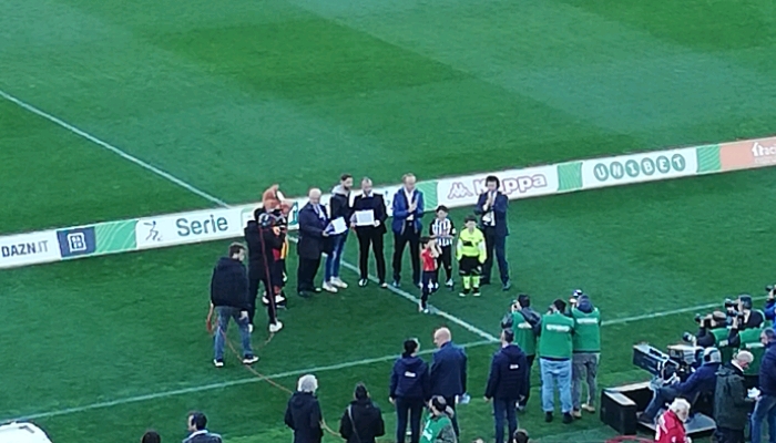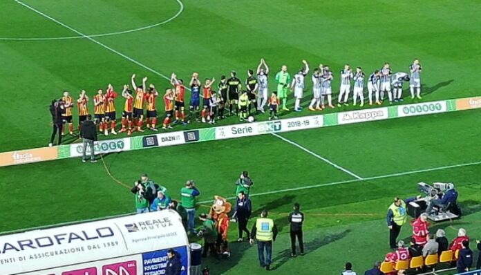 Prima dell’inizio della gara il presidente di Lega Balata consegna due targhe ai responsabili di Lecce e Ascoli per l’esemplare comportamento tenuto durante la partita sospesa. Comportamento che ha messo in primo piano la salute di Scavone, omaggiato anche lui, che in quei momenti non stava in condizioni di salute ottimali.