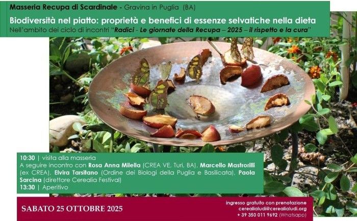 Oggi a Gravina in Puglia l’incontro “Biodiversità nel piatto: Essenze selvatiche...