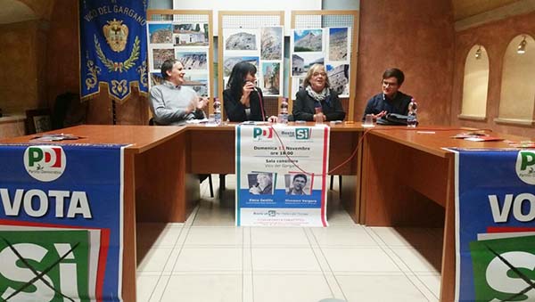 Sala consiliare gremita a Vico del Gargano per l’incontro organizzato dal Circolo locale del Partito Democratico a sostegno del Sì al Referendum Costituzionale del prossimo 4 dicembre. Per spiegare le ragioni del Sì alla riforma Boschi infatti sono arrivati l’europarlamentare PD Elena Gentile e Giovanni Vergura della Direzione Nazionale dei Giovani Democratici.